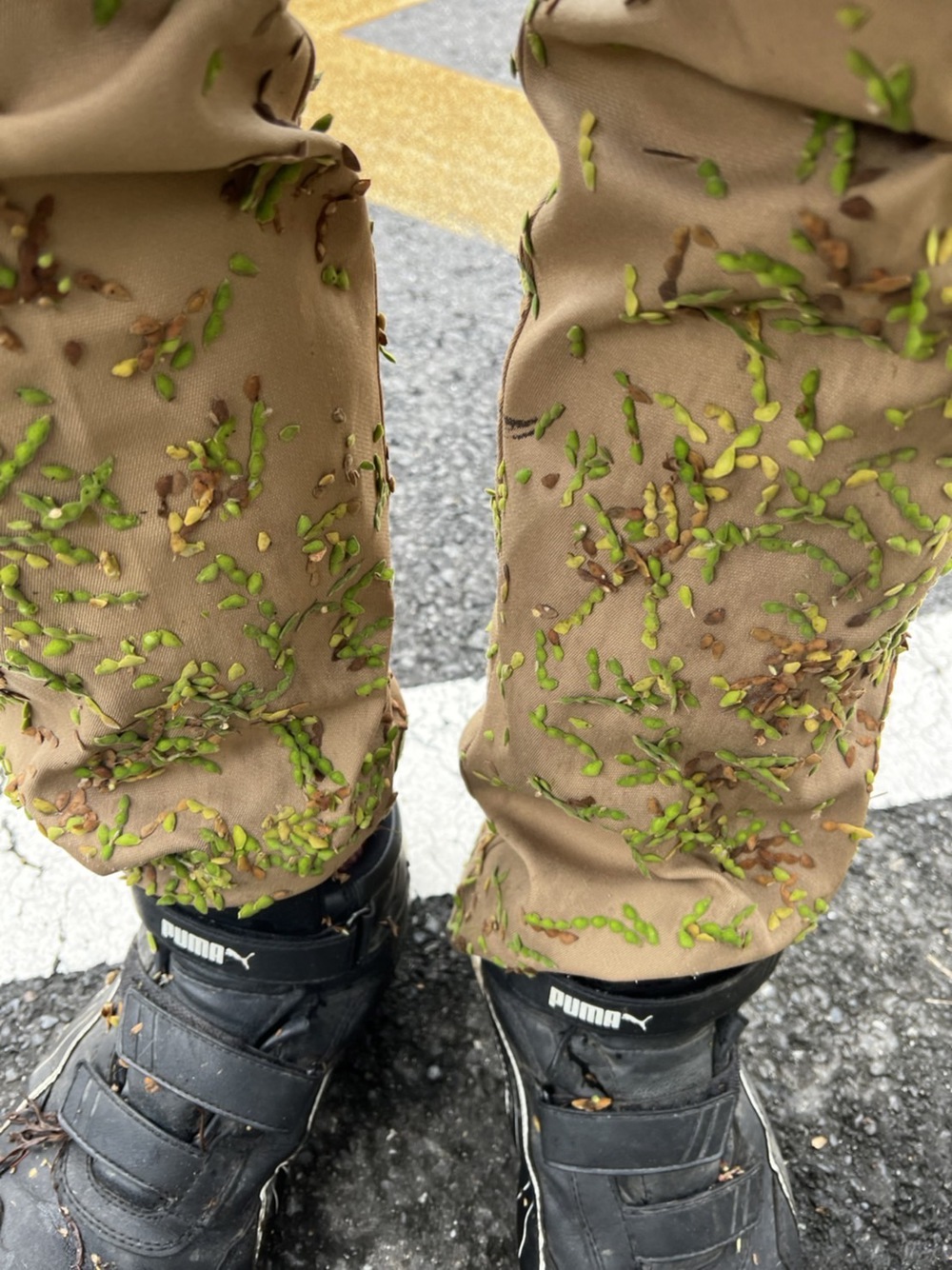 現地調査の現場でひっつき虫に取り憑かれ、しつこく張り付いていて取れない。